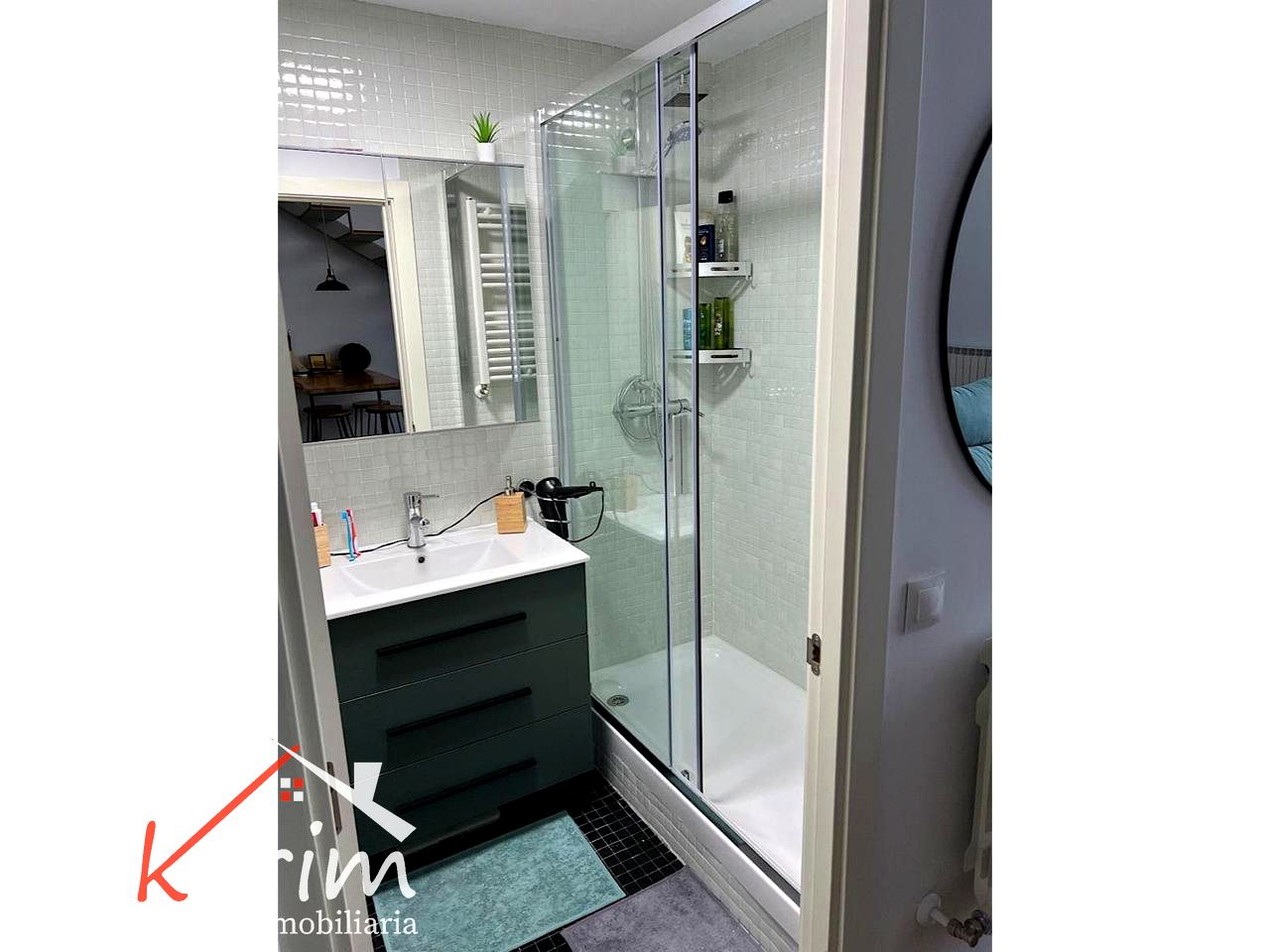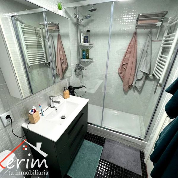 - Baño completo con ducha, de estilo moderno y funcional.