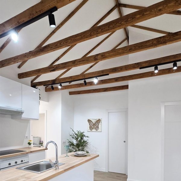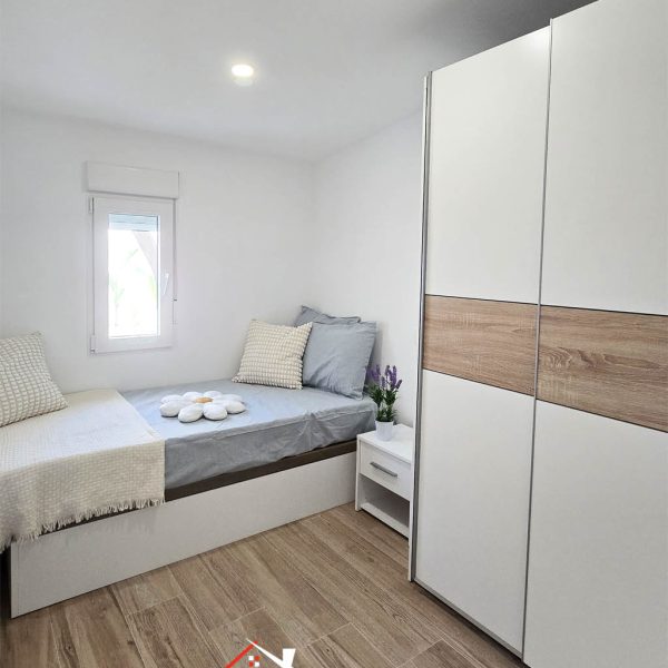 Todo ello con materiales de calidad, ventanas tipo climalit, tarima flotante, calefacción eléctrica y aire acondicionado con bomba de calor. En la reforma de la casa se han utilizado suelos Cáviti para evitar humedades y aislamientos con lana de Roca en todas las paredes para que su eficiencia energética sea óptima.