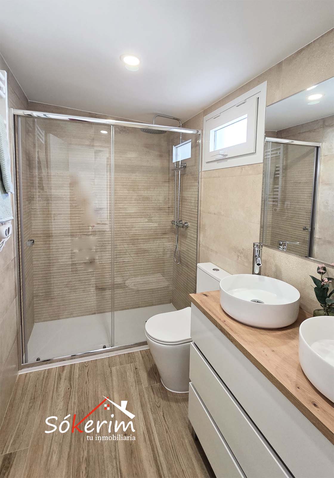 Dos baños completos, uno en el dormitorio principal con doble seno para tener tu propio espacio en él y el segundo para compartir con el resto de la casa.