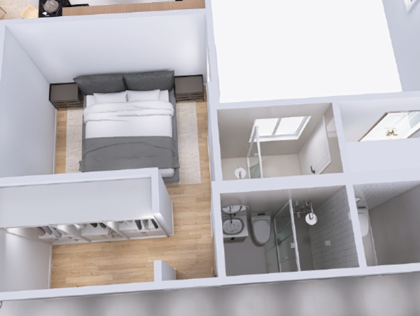 Un dormitorio Principal amplio y luminoso que incorpora un vestidor y un aseo en suite, procurando máximo confort y almacenamiento optimizado. La