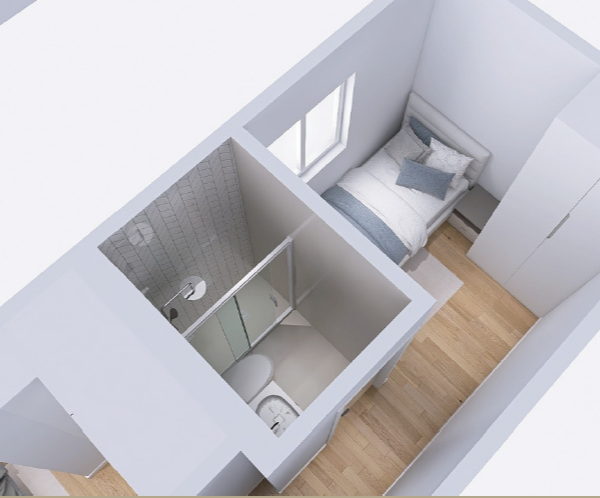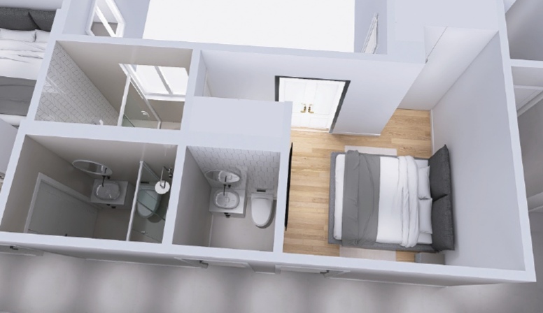 Y una tercera habitación de menor tamaño, también con aseo en suite y ventilación al patio central. Ideal como dormitorio, estudio, habitación para huéspedes o cuarto auxiliar.