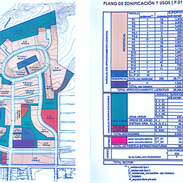 Este terreno cuenta con 94.323 m² urbanizables en el Sector S- RTU12 de San Juan de los Terreros. Su uso global es RESIDENCIAL, permitiéndose 250 viviendas , con una edificabilidad de 0.30 m² techo/m²suelo(28.296 m²).