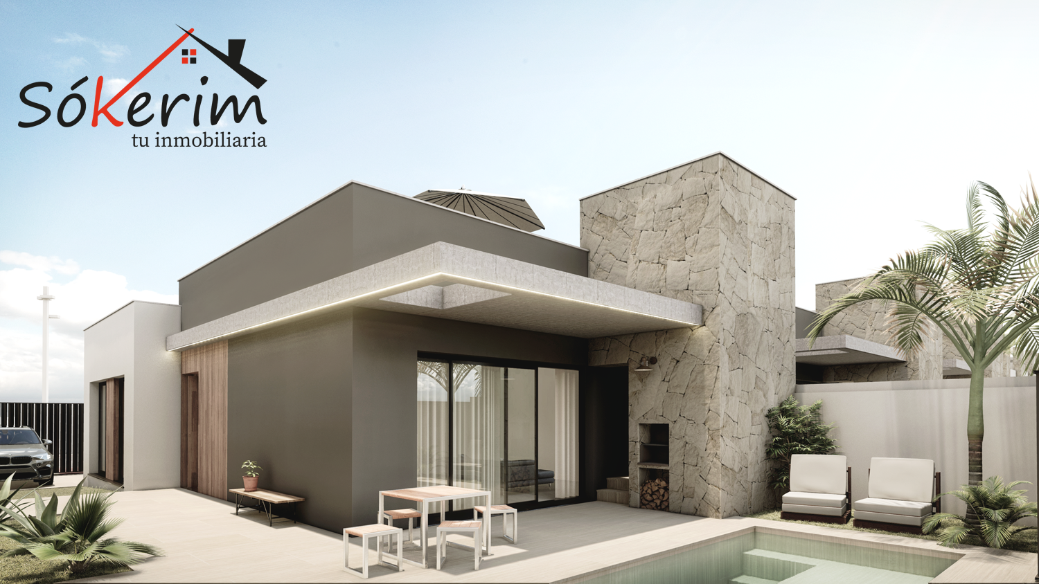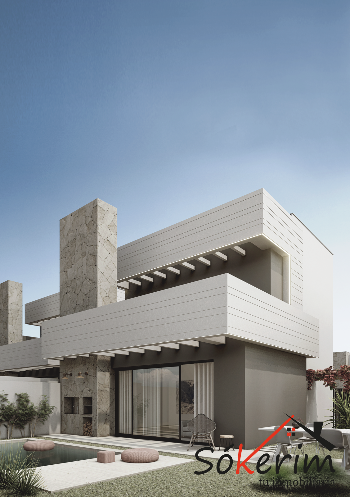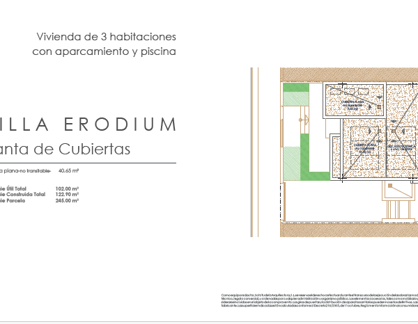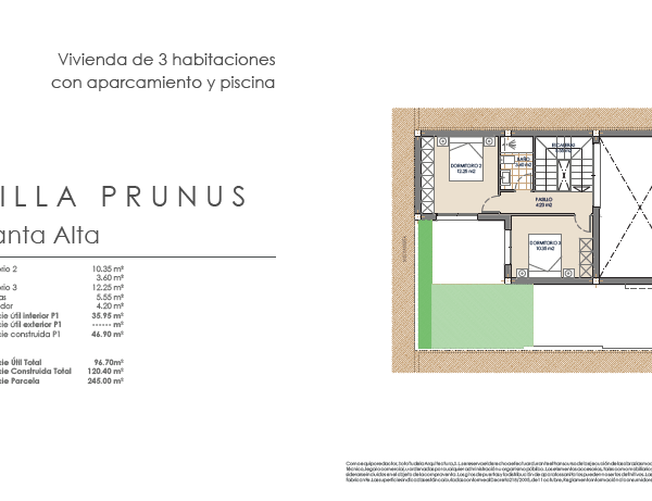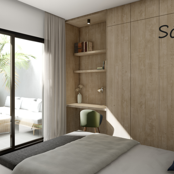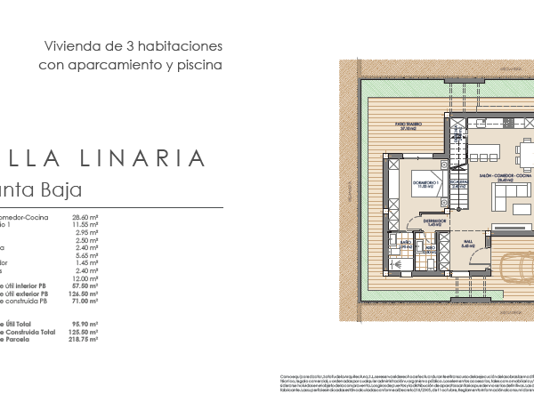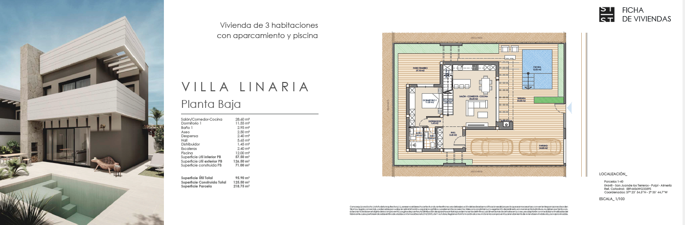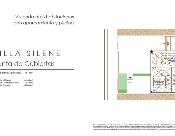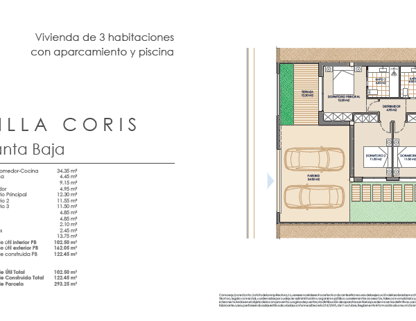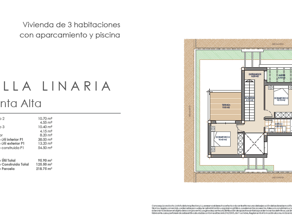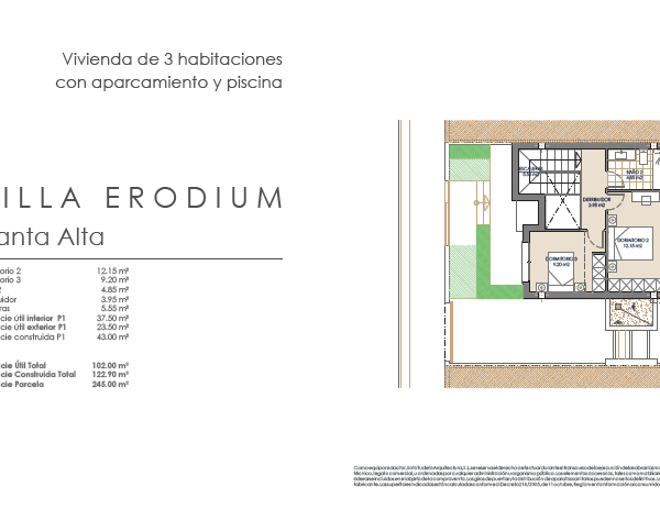 Las villas tienen desde 118 metros y todas constan de 3 habitaciones con aparcamiento y piscina. Sus distribuciones son de conceptos abiertos en los espacios comunes y están proyectadas para que la luz y la amplitud sean las protagonistas de estas viviendas.
