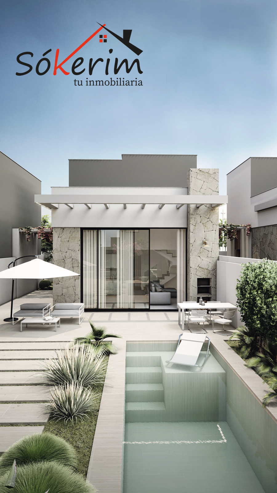 Y por último en el jardín se combinan zonas de solería con hormigón impreso, gres porcelánico de primera calidad con acabado antideslizante y césped artificial.Por todo esto y más VEN a visitarnos sin compromiso.