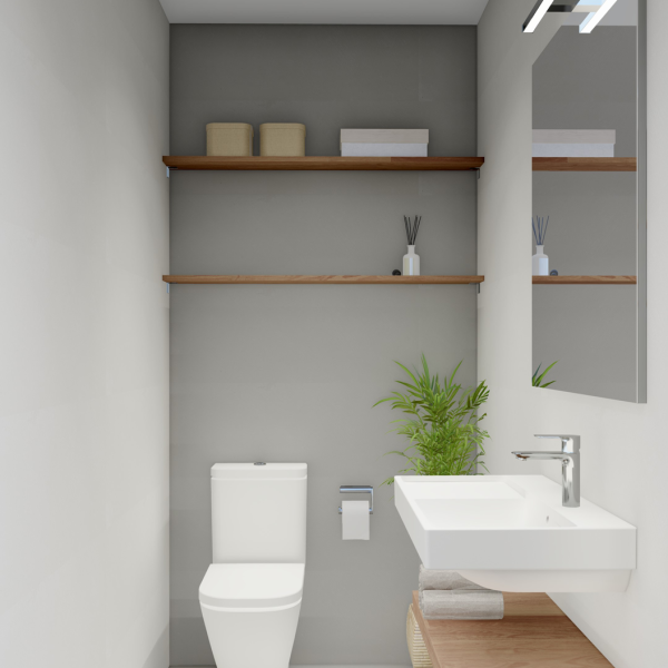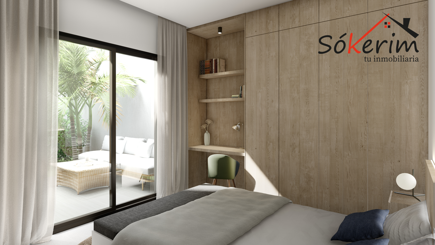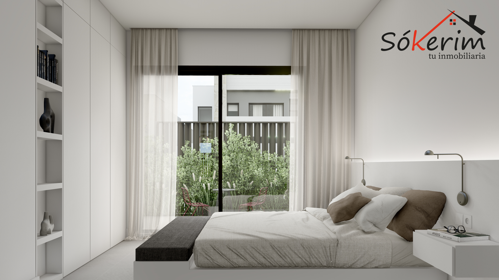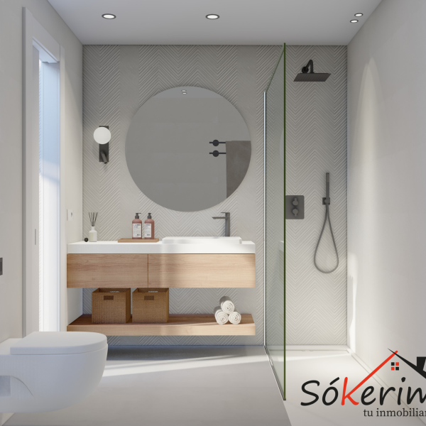 Cocina acabada en Blanco con encimeras porcelánicas y armarios empotrados en todos los dormitorios.